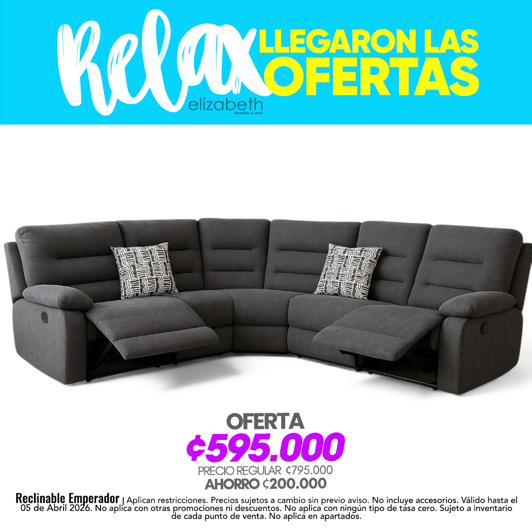 Reclinable Emperador | Aplican restricciones. Precios sujetos a cambio sin previo aviso. No incluye accesorios. Válido hasta el 05 de Abril 2026. No aplica con otras promociones ni descuentos. No aplica con ningún tipo de tasa cero. Sujeto a inventario de cada punto de venta. No aplica en apartados.