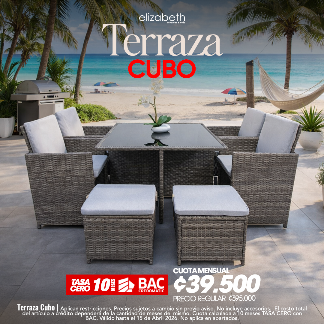Terraza Cubo | Aplican restricciones. Precios sujetos a cambio sin previo aviso. No incluye accesorios. El costo total del artículo a crédito dependerá de la cantidad de meses del mismo. Cuota calculada a 10 meses TASA CERO con BAC. Válido hasta el 15 de Abril 2026. No aplica en apartados.